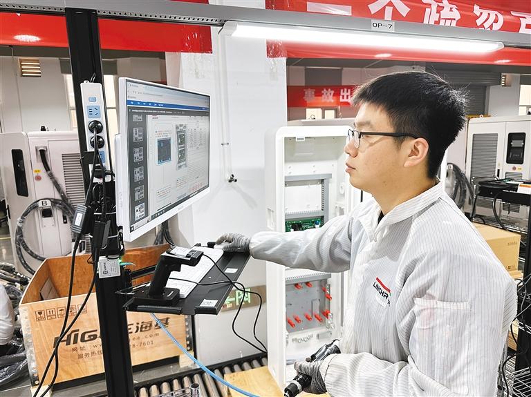 上午10时许,记者来到领充数字能源的沣东制造中心,看到工人们正在熟练地操作设备,有条不紊地完成各项生产任务。在智能制造生产线上,电器装配、测试、包装等一系列制造流程有序高效,如行云流水。领充数字能源制造经理刘亮对记者说:“目前我们的制造中心已建成微电网技术研发中心、3条直流充电桩生产线、1条光储设备生产线,预计2024年销售收入过亿元”。