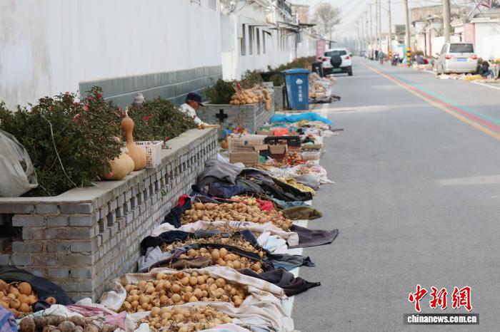 路庄村家家户户种葫芦、卖葫芦,像路福达这样在路边摆摊销售葫芦的村民不在少数。在道路两侧堆成小山一样的葫芦中,村民们坐在摊前,手上却不停歇,他们将葫芦编织成挂件、花束等摆件。经过这番简单加工,原本售价10元(人民币,下同)的葫芦,价值可提升至20元以上。