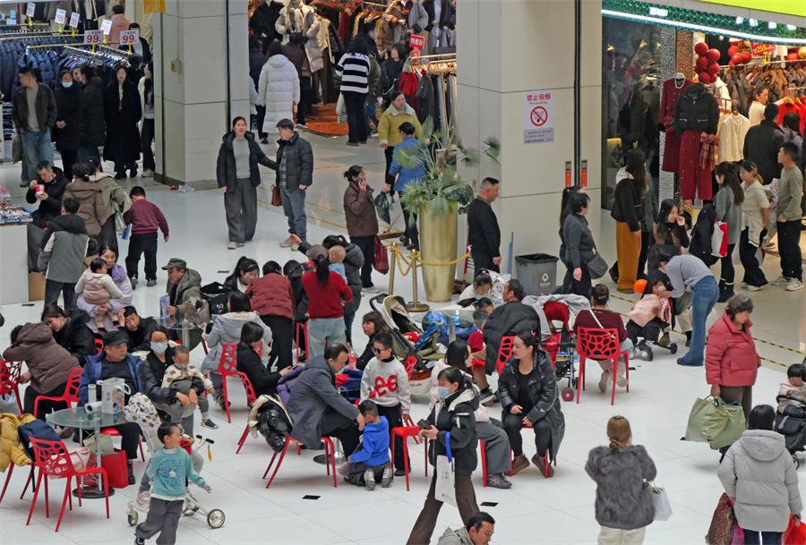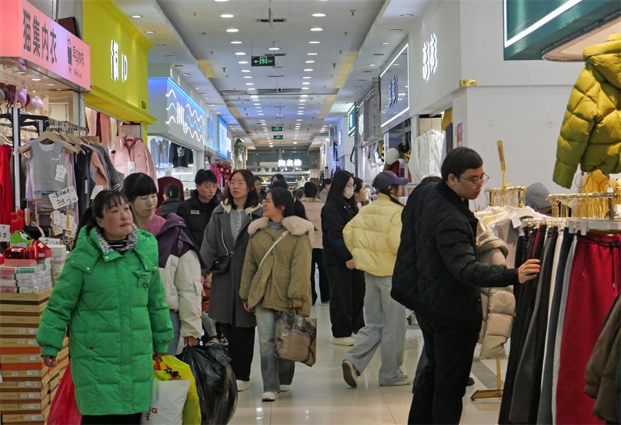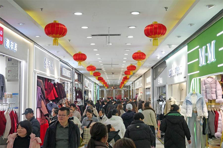 1月26日正值腊八节,康复路附近的西北商贸中心迎来春节前购衣高峰。商场内挂满红灯笼,洋溢着浓郁的节日氛围。各个服装档口人流如织,不少市民全家出动,为家人挑选新衣。特价标牌醒目悬挂,羽绒服、针织衫等冬装成为热门选择。椅子上坐满了逛累了的顾客,人们在热闹的选购中,感受迎接新年的喜庆与温暖。