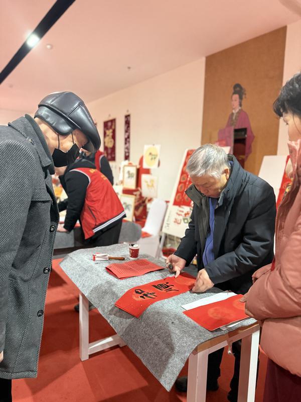 在公益活动区,来自西安市老年书画研究会的四位书法家正在挥毫泼墨。“我们已经坚持多年为群众写春联送祝福了。”负责人郭玉山说,看到大家喜欢,他们写得很带劲。一旁,陕西省关中葫芦刻画技艺传承人梁平安向群众介绍自己的作品。“我今年75岁,这门手艺是祖辈传下来的,也算是老有所学、老有所乐。”梁平安说。
