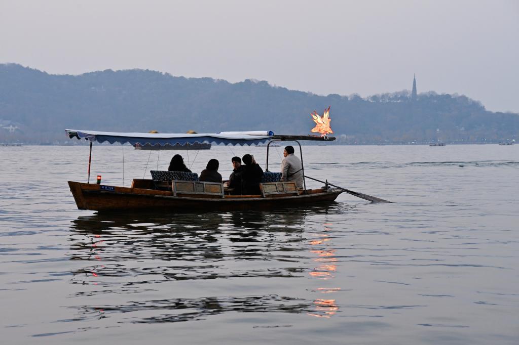 暖黄的马灯光晕随水波荡漾,传统手划船装点以吉祥马灯,灯影与湖光相映……当地特意为迎接新春打造的“马灯福气船”全新升级亮相,为冬日西湖夜游增添一抹温馨的年节色彩。首批登船的游客厉增业欣喜地说:“搭上‘福气船’,马年肯定‘马上好运’!”