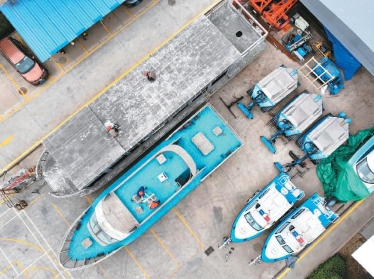 中国电建西北院港航船舶科技有限公司车间内正在建造中的船体。 (资料图片)