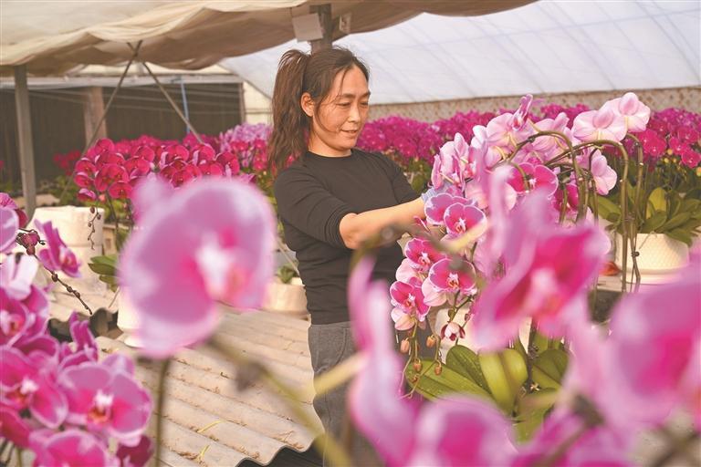 产业发展带动了当地村民就业。工人杨娟是卷子村村民,在何小辉的日光温室大棚主要负责挑花、组盆。“组一盆6元,我一天能组20多盆。”杨娟说,“在这里干活,离家近,收入也不错,还能照顾老人和孩子,比外出打工强多了。”