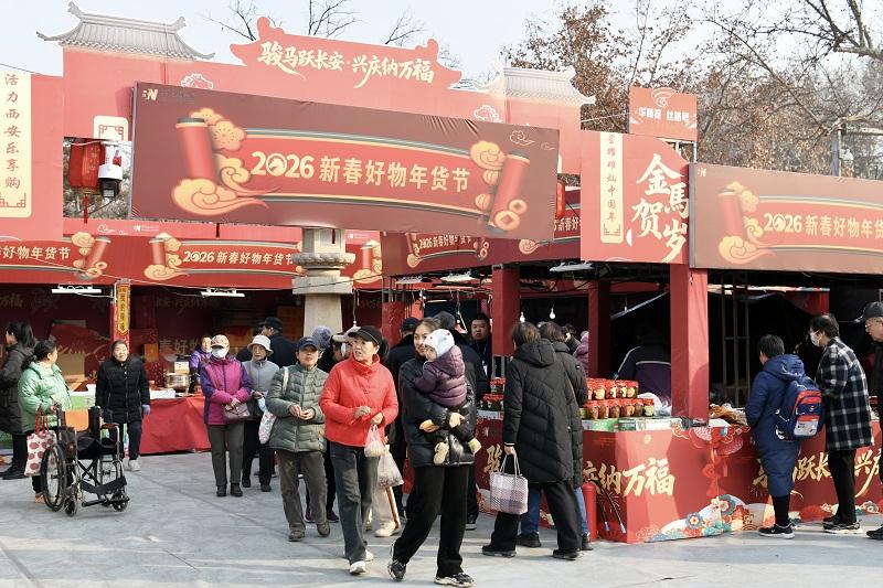 市民在兴庆公园“骏马跃长安·兴庆纳万福”2026新春好物年货节上选购年货。记者 郝钟毓摄