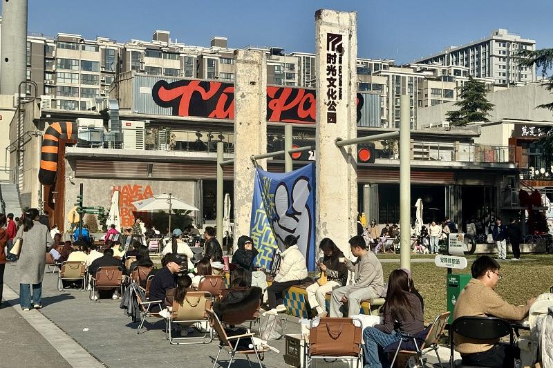 不少市民在时光文化公园内享受假日惬意时光。记者 郝钟毓摄